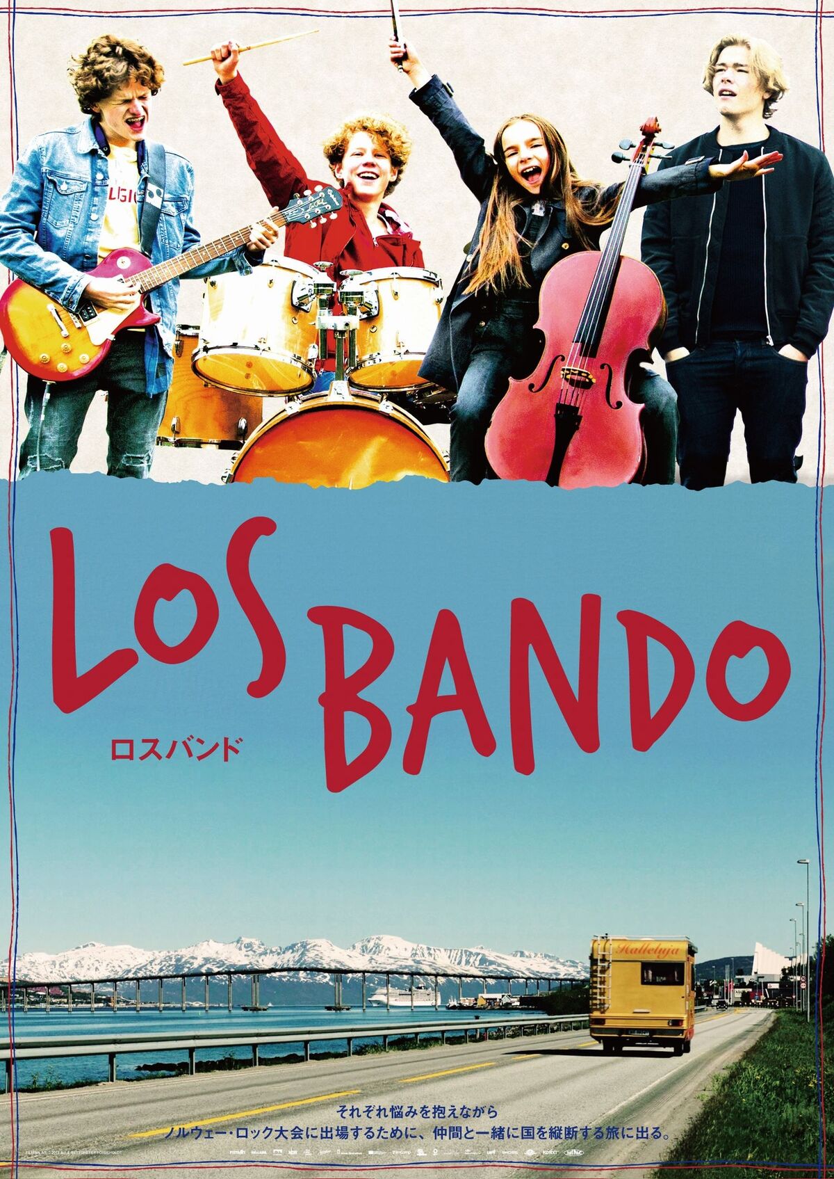 ドラム担当のグリムと、親友でギター兼ボーカルのアクセルはノルウェーのロック大会に出るために練習に励む毎日。グリムはアクセルの音痴が気になってしかたがない。真実を言い出せないまま、念願の大会出場のチケットを手に入れたものの、ベースもいなければ、開催地は遥か北の果ての町・トロムソ。ベーシストのオーディションにやってきた9歳のチェロ少女のティルダを仲間に入れて「ロスバンド」を結成し、近所に住む名ドライバーのマッティンの運転で長旅のドライブに出かけるが……。