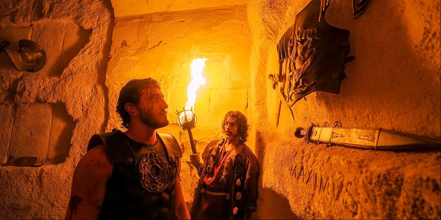 平穏な暮らしを送っていたルシアス(ポール・メスカル)は、将軍アカシウス(ペドロ・パスカル)率いるローマ帝国軍の侵攻により愛する妻を殺され、捕虜として拘束されてしまう。すべてを失いアカシウスへの復讐を胸に誓ったルシアスは、謎の奴隷商人・マクリヌス(デンゼル・ワシントン)に買われ、ローマへと赴くことに。そこで剣闘士《グラディエーター》となった彼は、復讐心を胸に、力のみが物を言うコロセウム《円形闘技場》で待ち受ける戦いへと踏み出していく――。