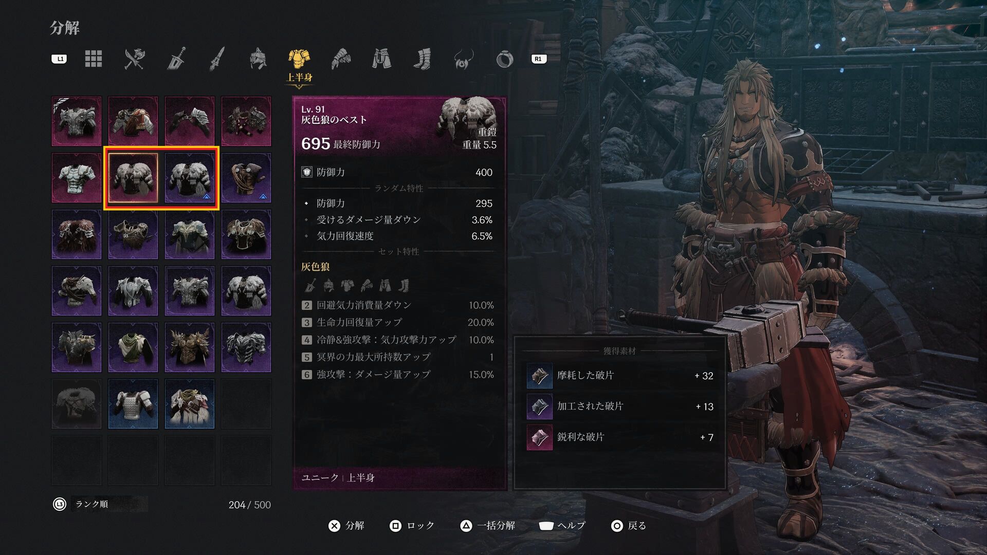 ・装備の重量と回避や気力(=スタミナ)の関係性