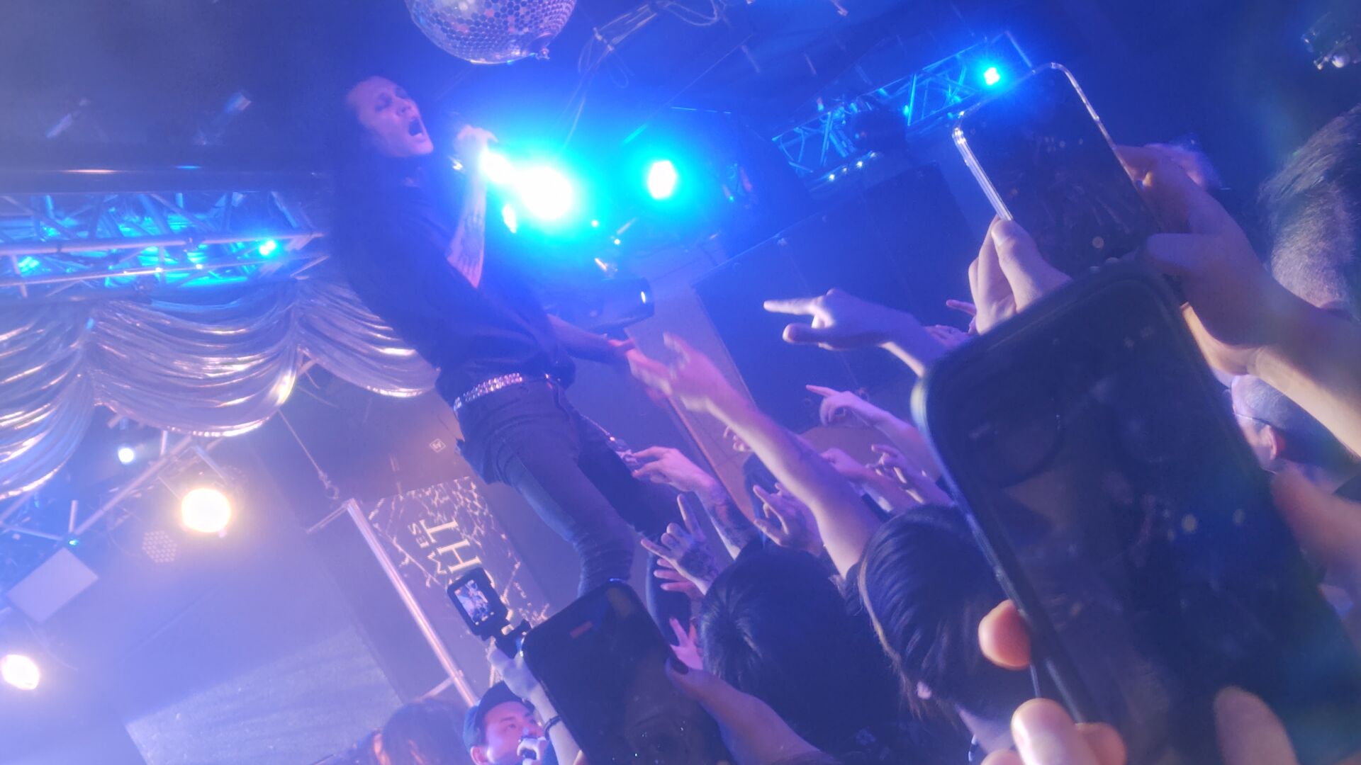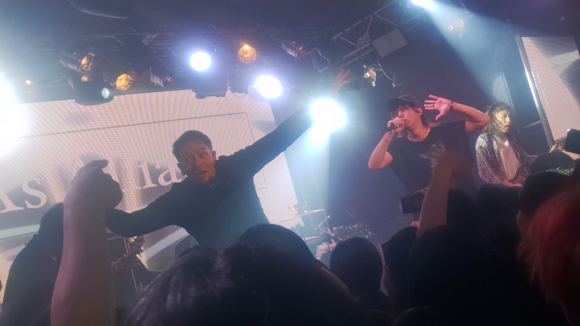 ((一応これは強めのアナウンスや禁止事項ではないのですが。会場BGMに「ロニーがボーカルの時の曲流すの辞めてもらえると嬉しいな」ってやんわりメンバーが言った場面があるので、(怒ったりはしてないです)無理矢理なリクエスト等をメンバーに伝えるのはご遠慮いただけると有難いです。))